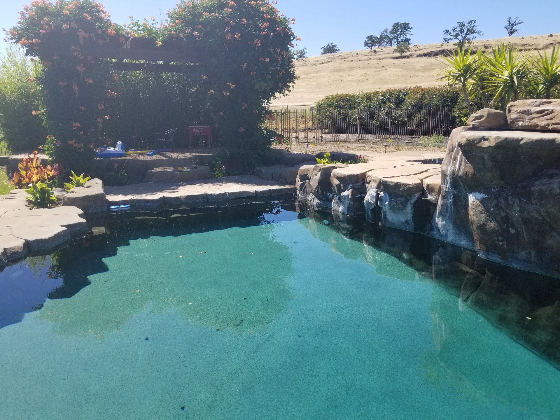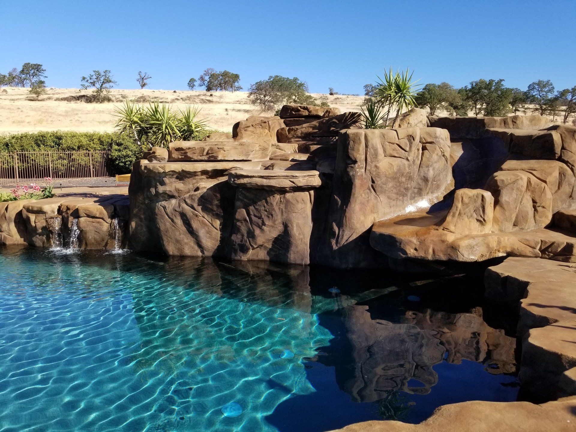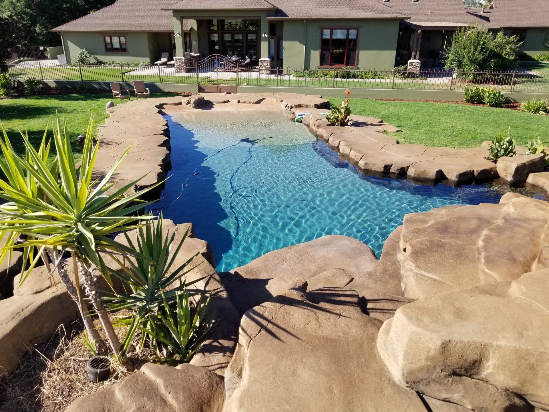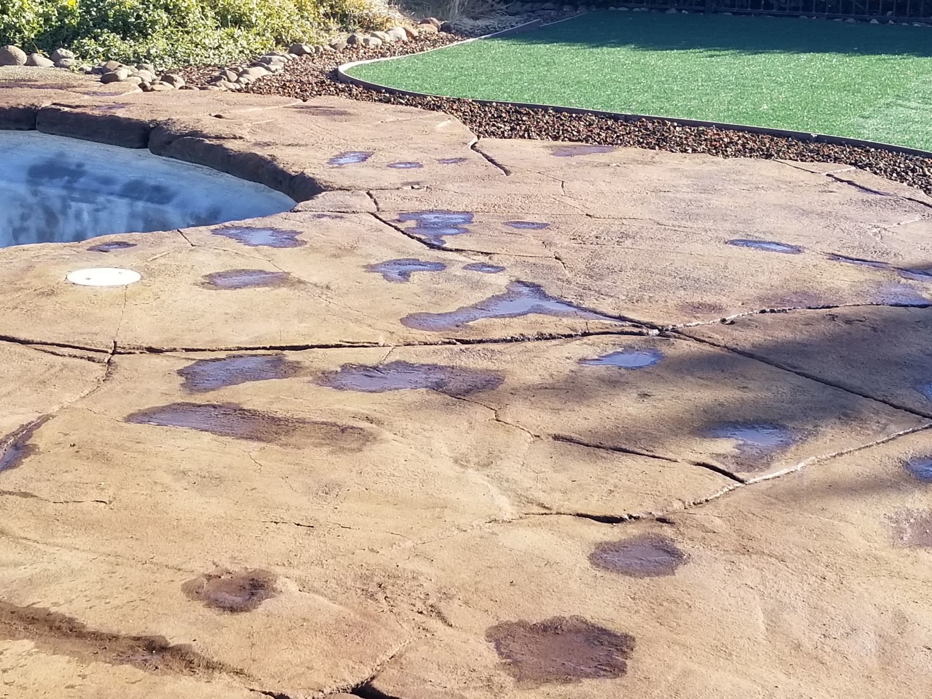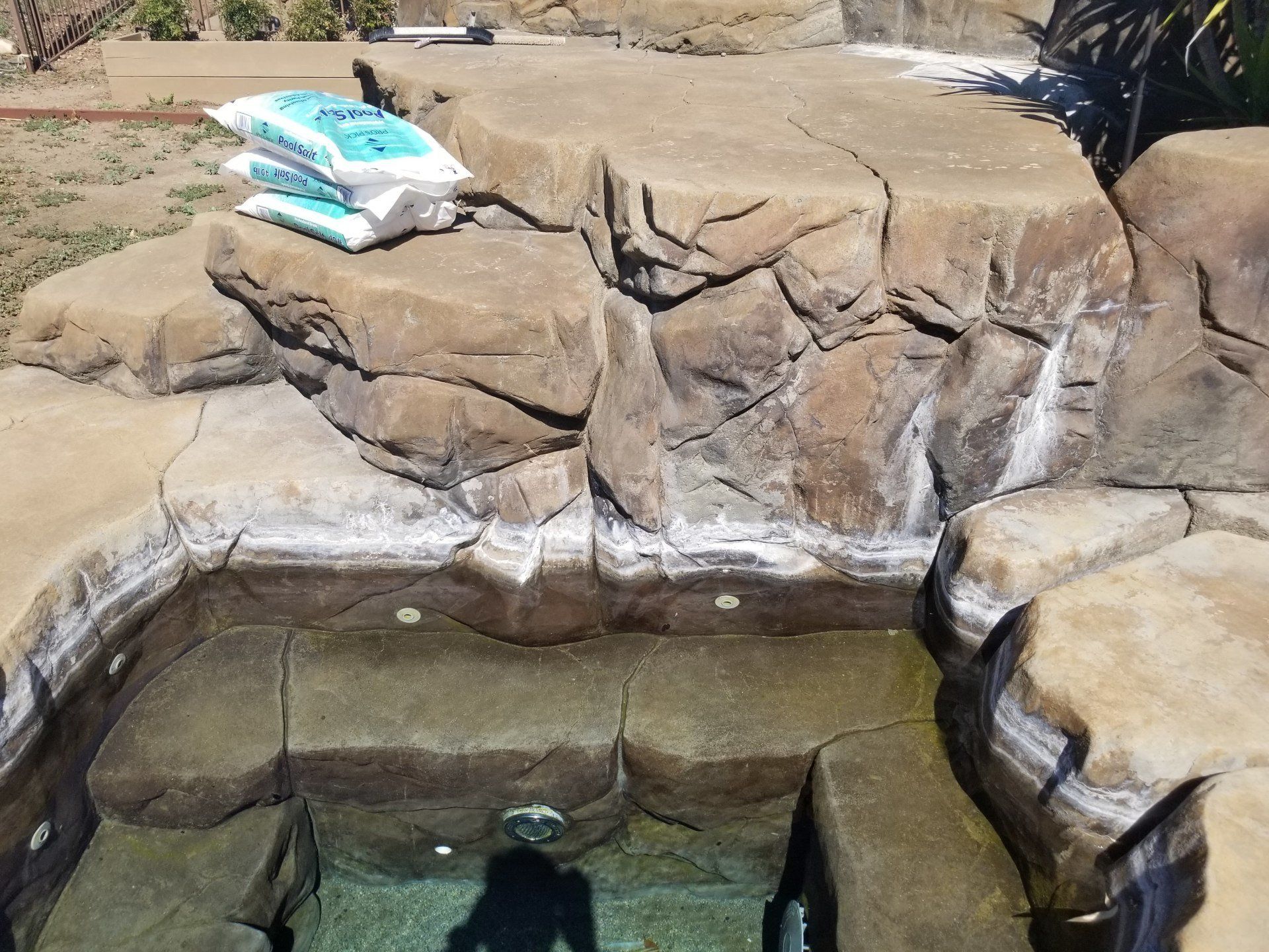 This pool's original stain was faded and calcium was abundant around the pool, spa and waterfall features. We blasted the pool and rock features as well as some of the decking. All were resealed with proper concrete mixture and stained to home owners and specifications.